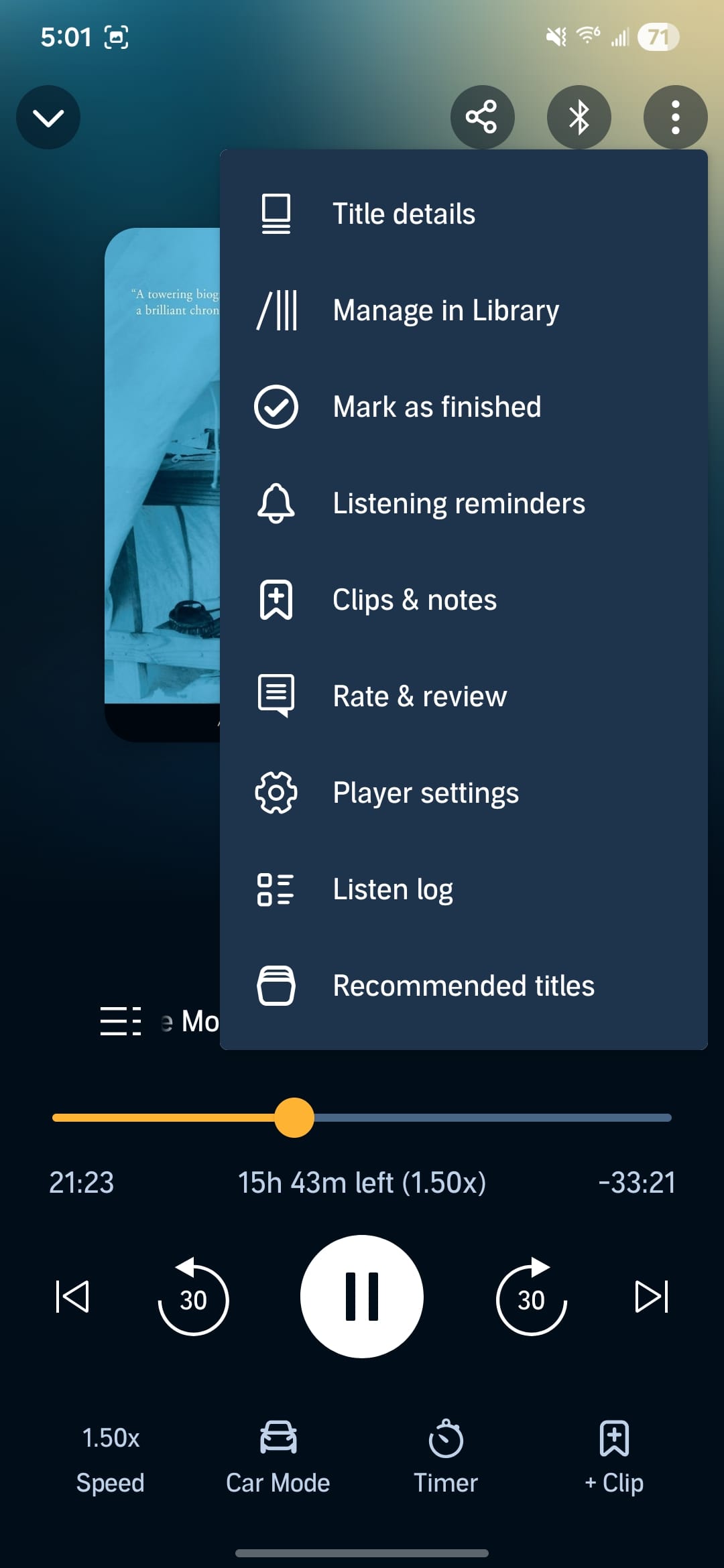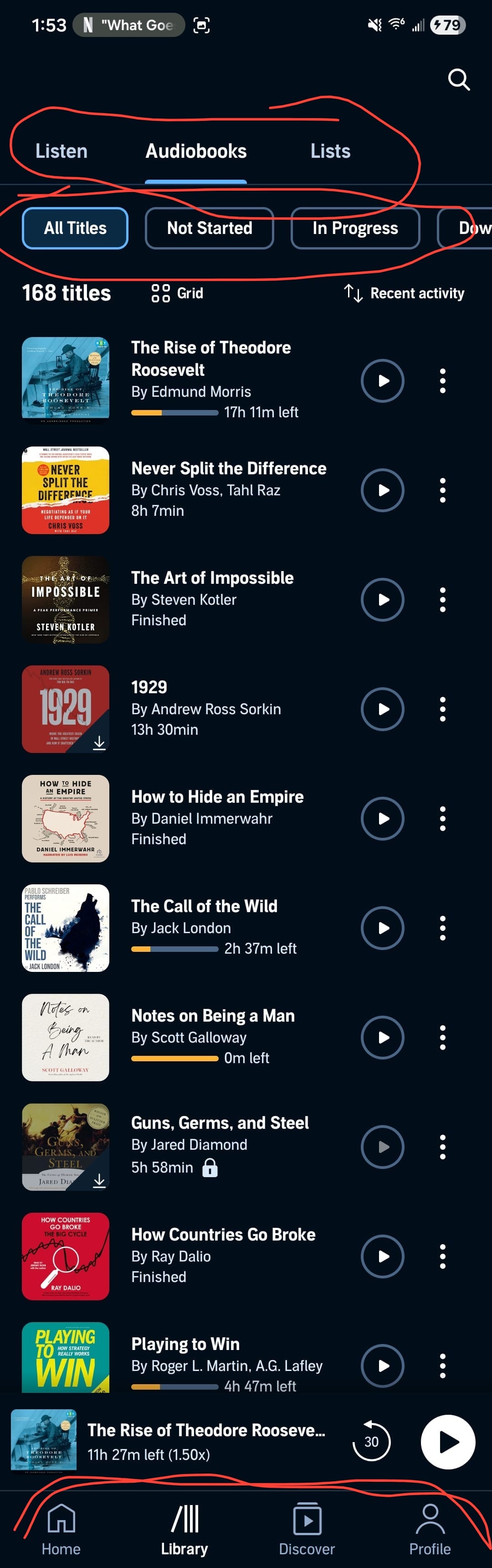 If you haven't heard of it, Libby offers a simpler, more humane experience for audio books. It is not as powerful, but it respects user intent and access. Though with a library card, it's totally free.