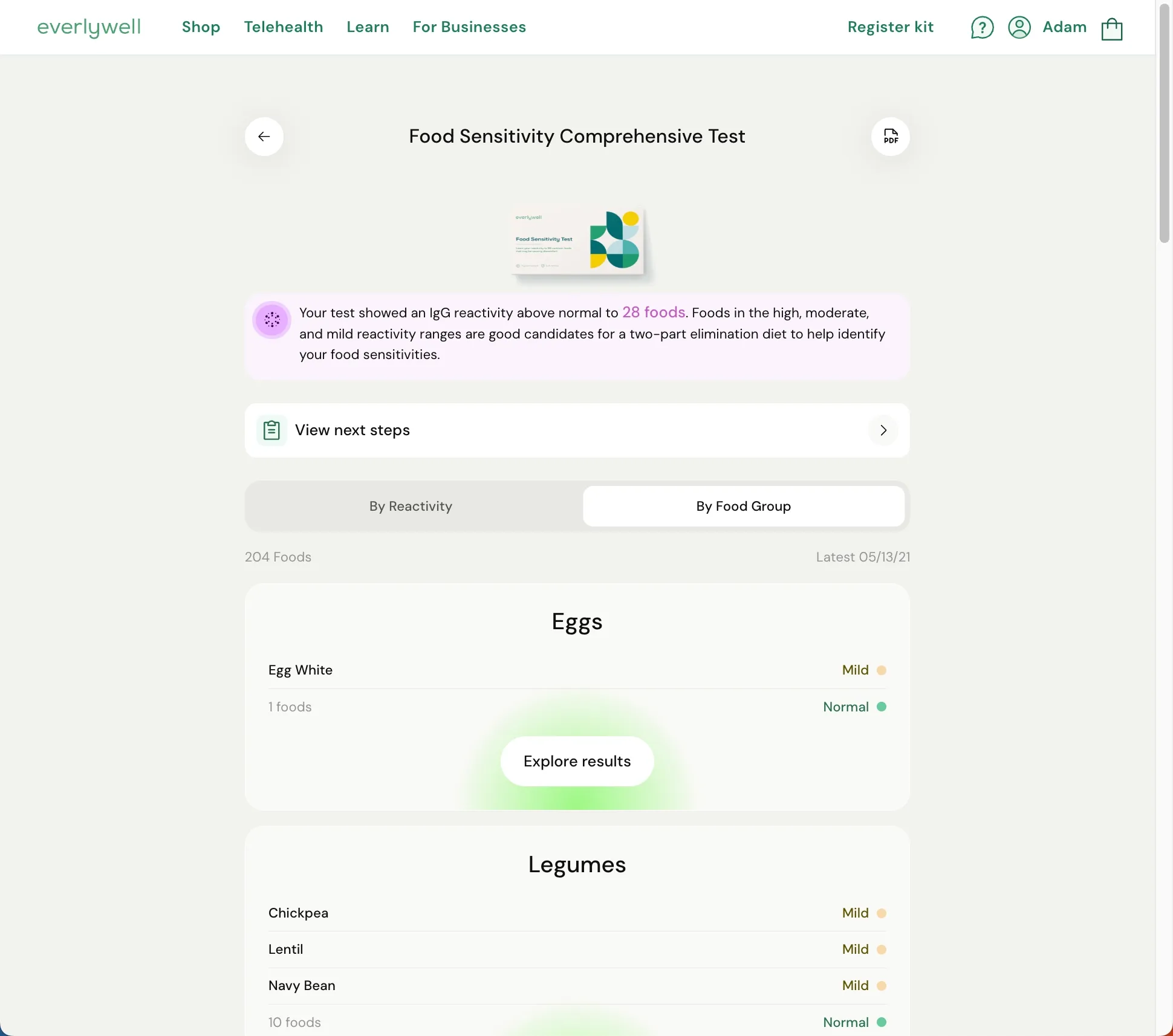 | Product Tested | Everlywell Food Sensitivity Comprehensive Test (IgG) |