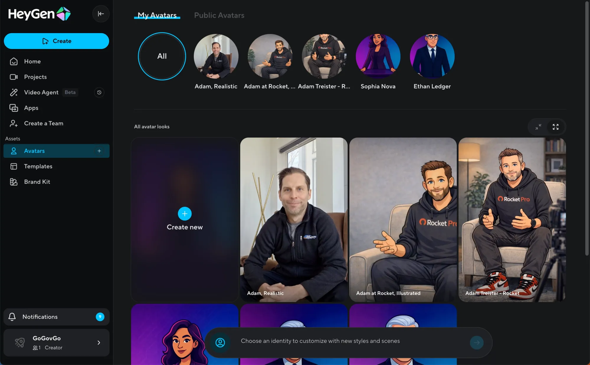 Over the course of the experiment, I created five avatars inside HeyGen.